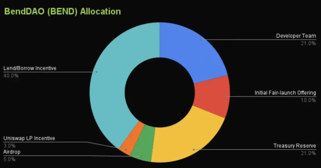 The $BEND token is the governance token of BendDAO, with a circulation of 10 billion. Fundraising is open to the public through IFO, accounting for 10% of the total circulation. % (1 billion).