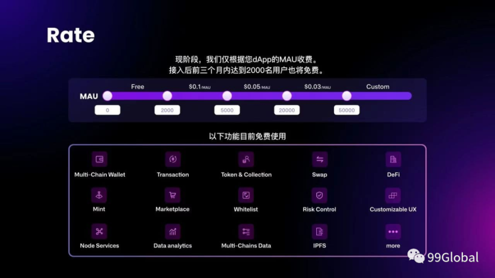 以 Particle Network 为例,梯度设置,分段收费,根据 dApp 的 MAU 建立收费机制。这是更强调对 Web 2 产品运营思路的借鉴,即先将产品使用量作为激励手段,随后再进行收费模型的建立。
