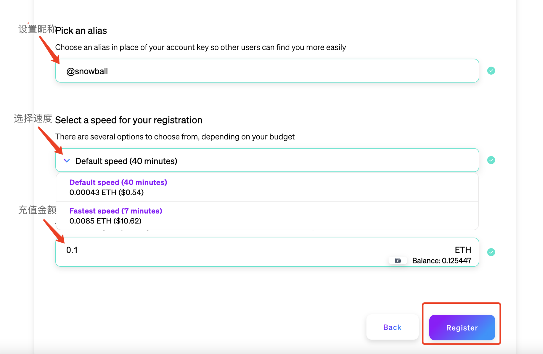 这时候需要设置昵称,选择充值的金额与到账速度,这里不差钱的可以选择速度较快的选项哈