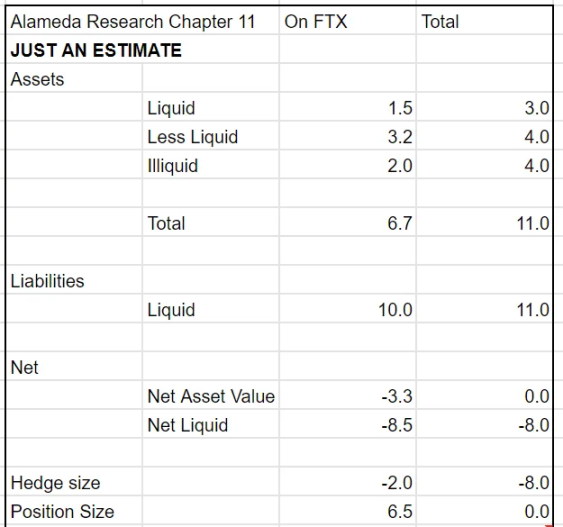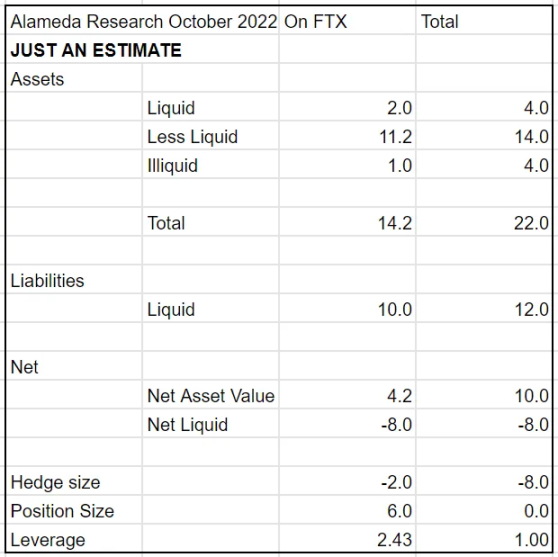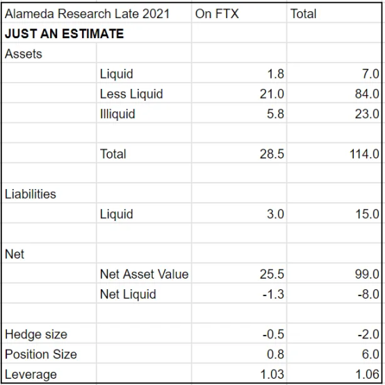 因此,到 2022 年初,我认为 Alameda 的资产负债表大致如下所示: