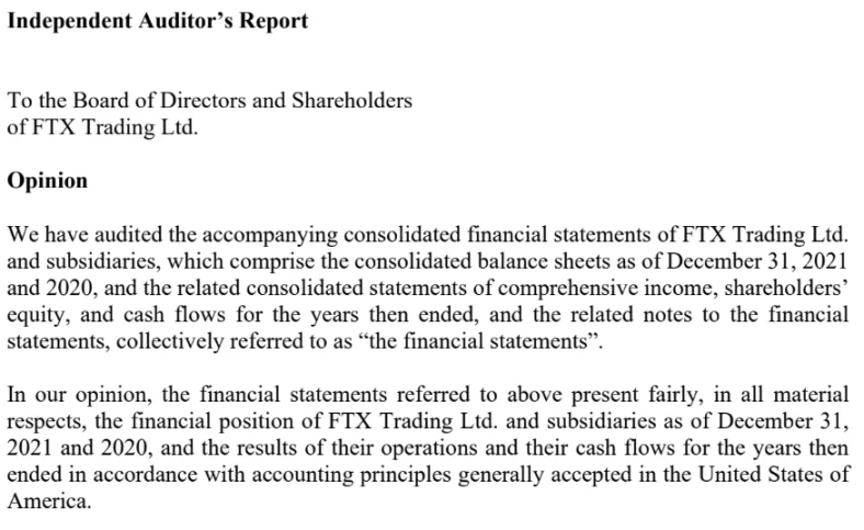 我认为它当时在 FTX International 上的地位是合理的——根据我的模型,大约为 13 亿美元,以数百亿美元的资产作为抵押——并且 FTX 成功通过了 GAAP 审计。