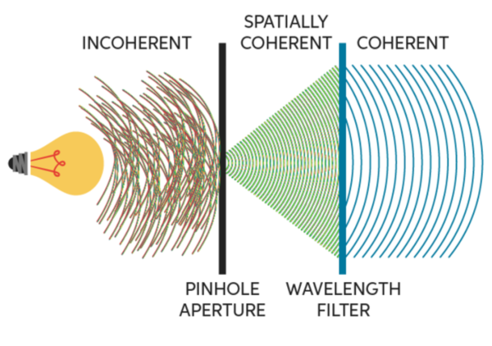相干光图解,来源:chegg而当时的技术却无法获得较好的相干光源。虽然通过一些技术手段改造水银灯获得了单色相干光,其结果并不能令人满意,高质量的相干光源才能更好的发生干涉,记录相位信息,从而得到清晰完整全息照片。