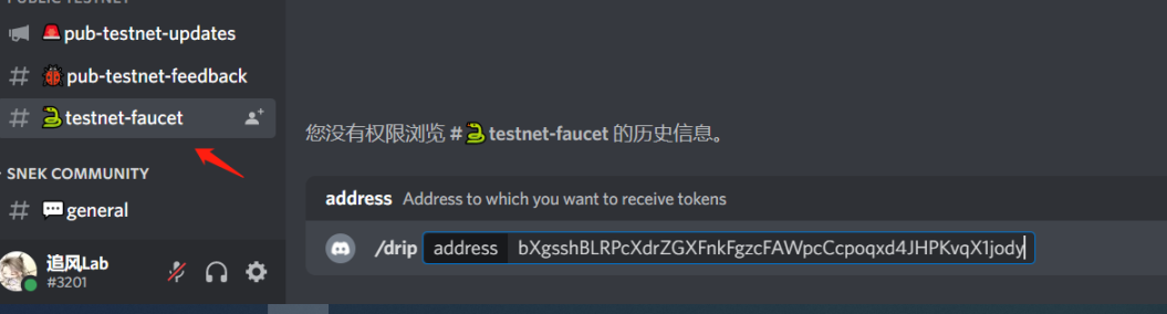 在#testnet-faucet 频道中输入以下命令:drip BSX_ADRRESS