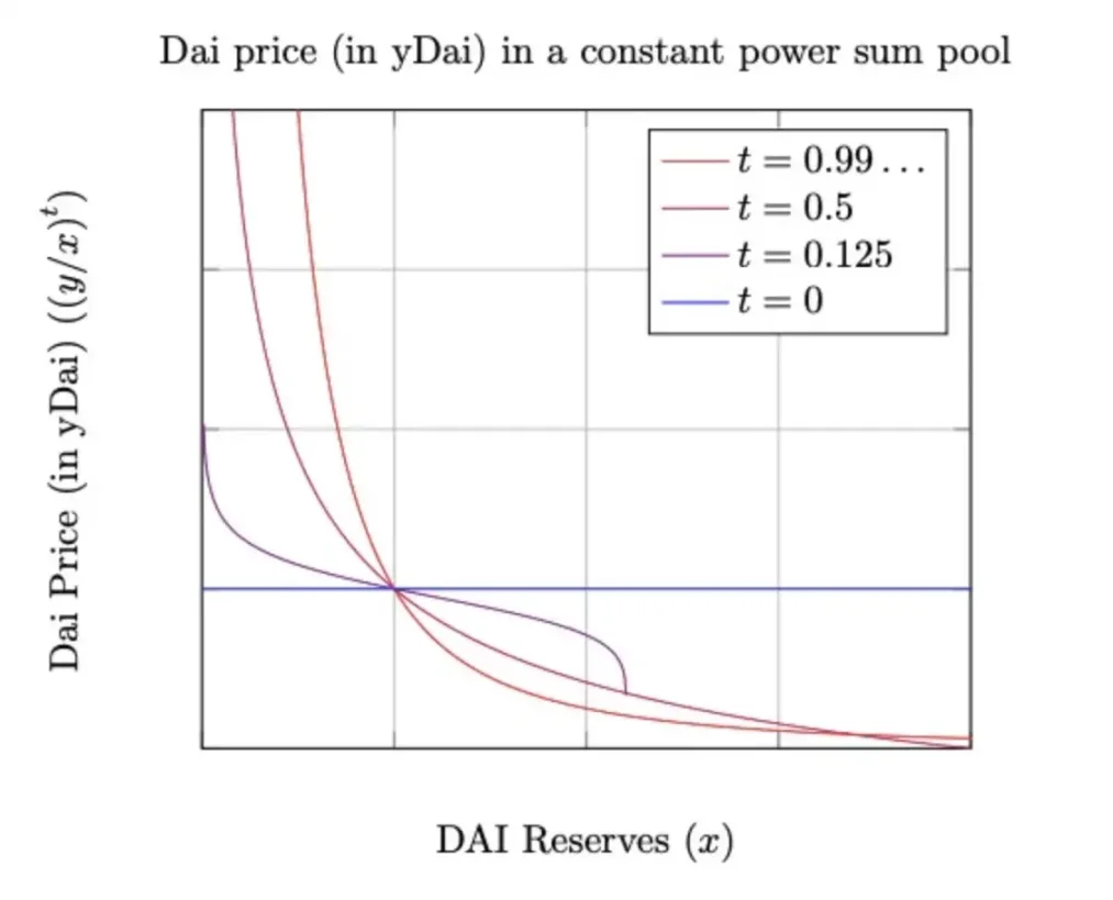 In the case of Lend, the user buys fyUSDC in the AMM with USDC and the rate of return is determined by the price of fyUSDC; in the case of Borrow, the user mint fyUSDC using excess collateral and sells fyUSDC through the AMM for USDC, and the borrowing rate is determined by the price of fyUSDC at that point. It is also because the AMM is responsible for the entire Yield Protocol lending process that it is necessary to use the AMM mechanism with the introduction of t as described above. The main purpose of this is to calculate the price of fyUSDC with a price in expiry time and to reduce slippage in the transaction as shown in the diagram below.