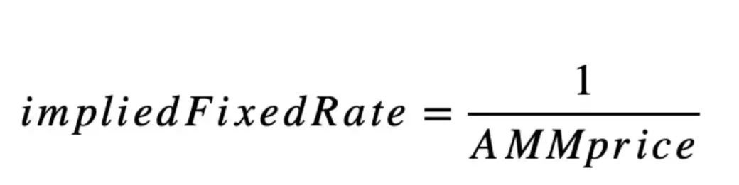 The pairs traded in vAMM are virtual assets, which are priced using the Uni V3 pricing model to determine the current fixed rate at which they can be traded. This is calculated using the following formula: