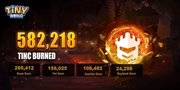The total of TINC Burn is 582,218 TINC this week, with Rune Burn, Tinymon Burn, Auction Burn, and Buyback Burn.