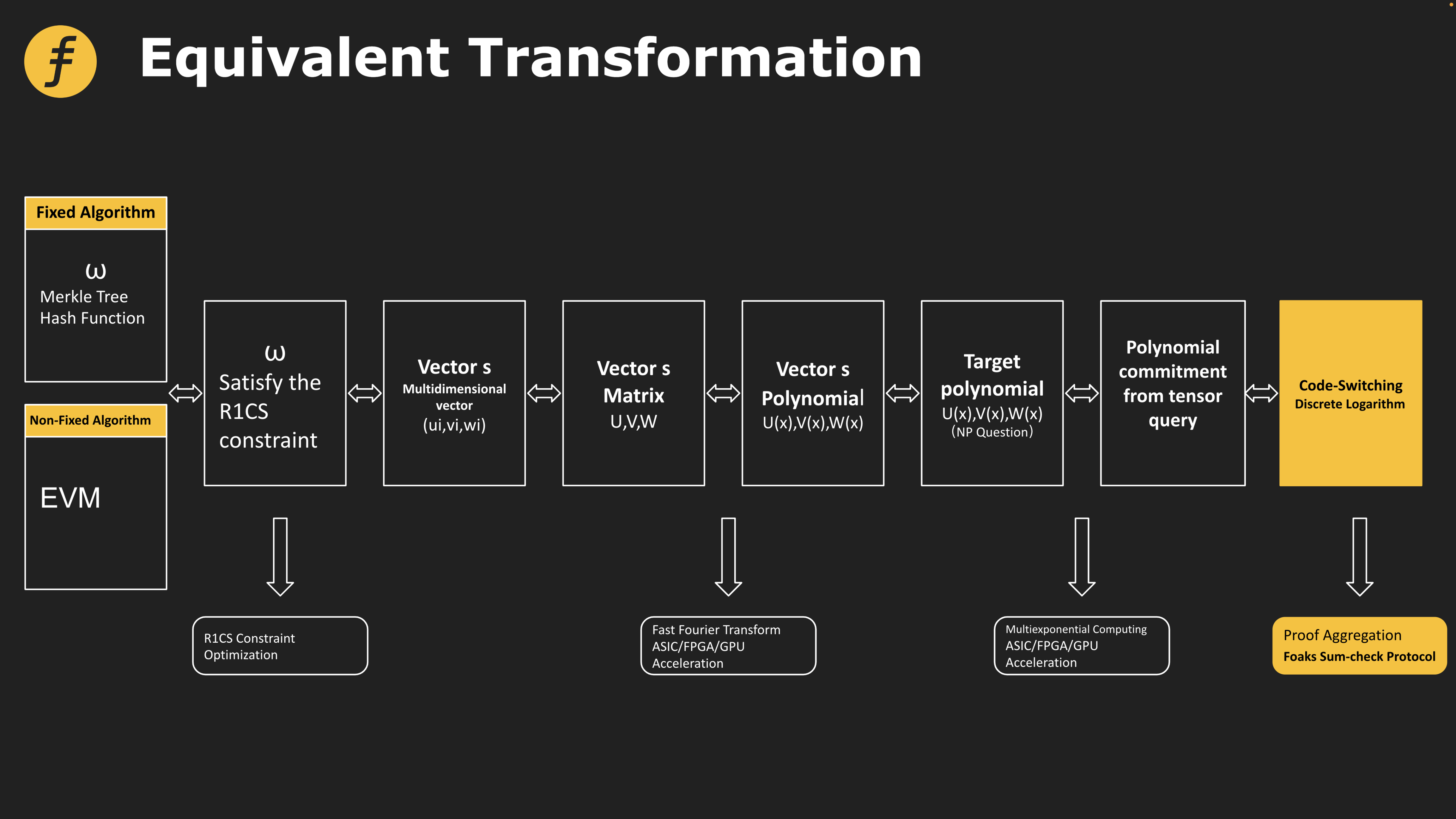 在 Fox Tech 所采用的 Foaks 证明系统当中,该协议同样发挥着重要的作用。具体来讲,为了实现对于某一操作码 opcode 正确性的证明,需要先将其转化为算术电路,之后转换为矩阵,最终生成多项式,对多项式应用证明系统当中的算法,在最后压缩证明的部分当中,同样将证明者(Prover)和验证者(Verifier)之间的交互过程转换为计算某个和式,也就是 sum-check protocol 的过程。