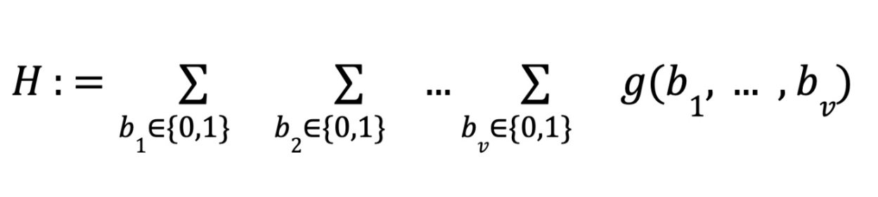 首先,需要明确在这个协议当中验证者的能力。我们假设验证者拥有可以计算函数 g 的预言(Oracle)。也就是说,对于验证者而言,确定某个输入 r1, ... , rv 之后,计算 g(r1, ... , rv) 是容易的。但是计算完整的结果 H 是困难的。