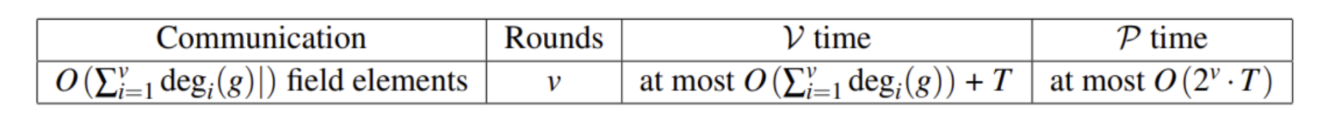 通过第 3 部分的论证,我们可以看到,协议一共由 v 轮组成,每一轮当中证明者需要给验证者发送一个 degi(g) 次的多项式,也就是 deg1(g)+ 1 个域元素,所以总体的通信复杂度是