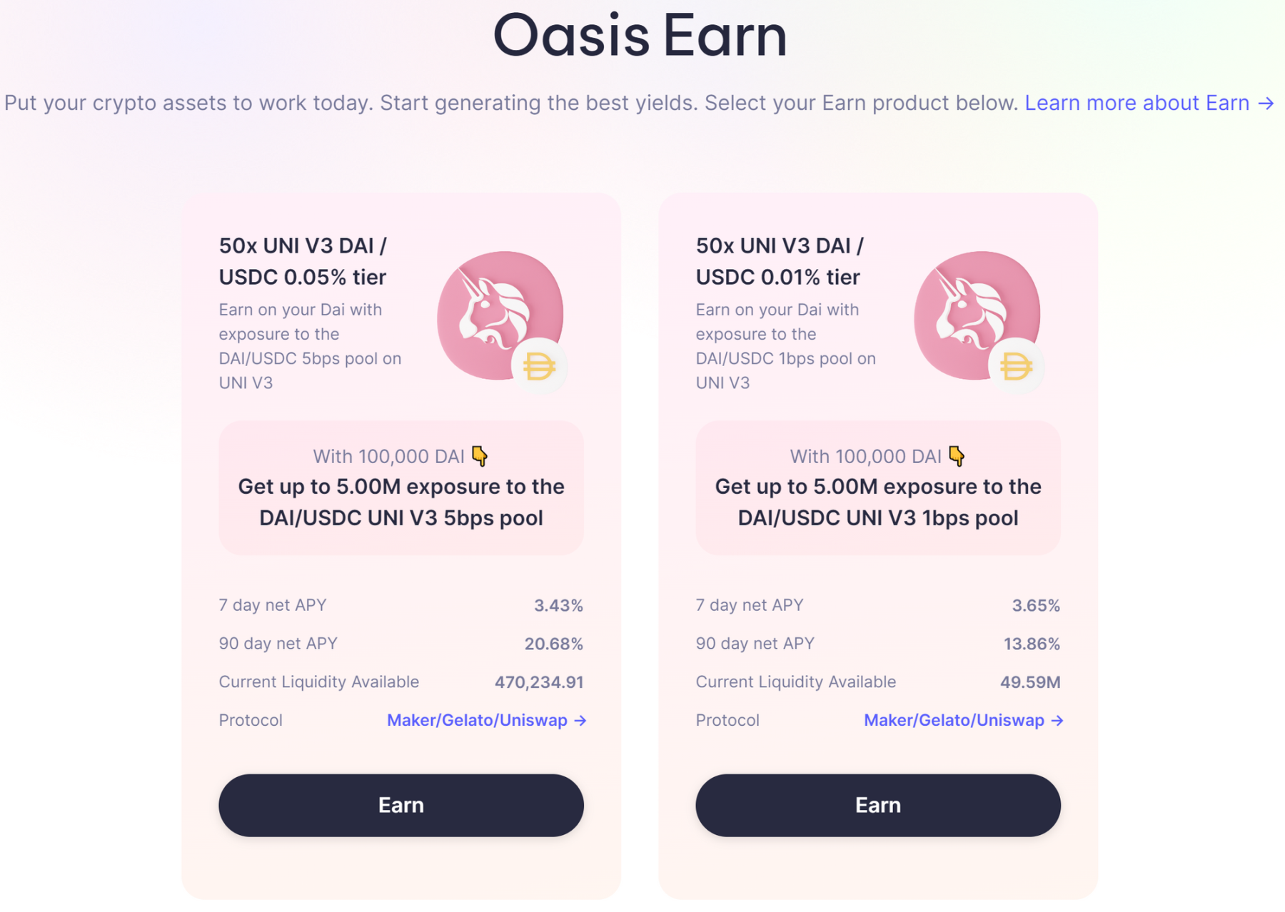 用户还可以选择将铸造的 DAI 和 USDC 放入 Uniswap V3 中进行流动性挖矿并在 Oasis.app 上借 DAI 加杠杆从而达到更高的流动性 Mining 奖励