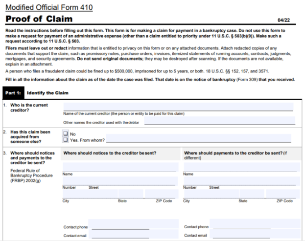 法院会确定一个债权登记的截止日期(Claims Bar Date),这是破产案件中最重要的时间点之一,债权人务必在债权登记截止日前申报债权,超出截止日期的债权登记可能会无效。债权登记表格需要填写债权人信息、债权金额、是否是担保债权以及债权性质等相关信息。在提交债权主张的同时也需要提交支持性的附件,就是上面说的债权相关证据的收集与保存。