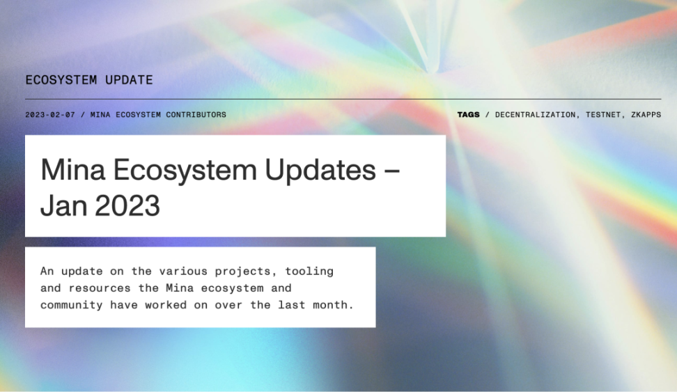 备注:每月更新的工作进展均可能包含预测、计划、目标或其他前瞻性陈述。此类前瞻性陈述基于相关生态合作伙伴基于更新时的可用信息所做的预期和假设。因此,计划、目标和其他声明有可能无法如所描述所实现,实际结果可能与此类更新中呈现的结果大不相同。Mina 基金会不对社区贡献者所做的更新负责,他们的工作对 Mina 生态的发展至关重要,并独立于 Mina 基金会正在开展的任何计划。