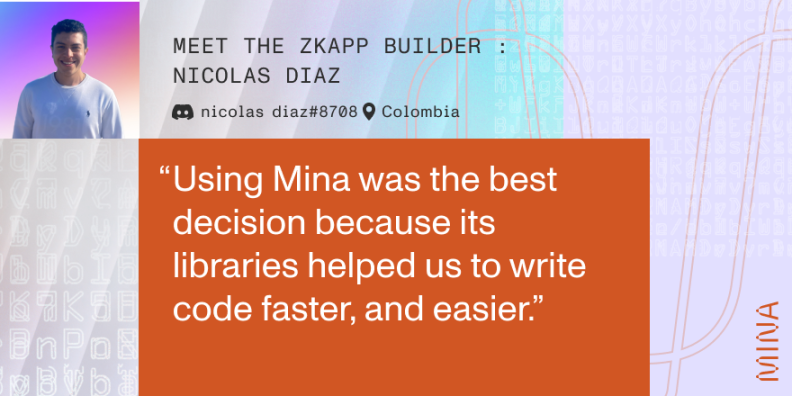 身为企业家和开发者的 Nicolas Diaz 分享了他在 Mina 上的 zkApp 项目和未来计划。