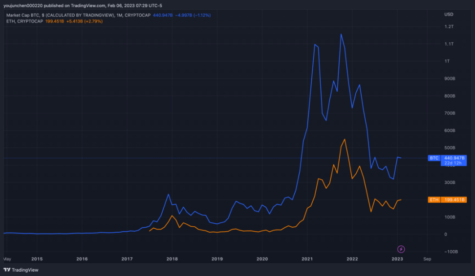 事实证明,比特币的不变还是有非常大价值的。现在还可以通过阅读比特币白皮书来理解比特币,以太坊当时的白皮书几乎已经只有历史价值了。另一方面,比特币至今仍就是比以太坊大得多的资产。