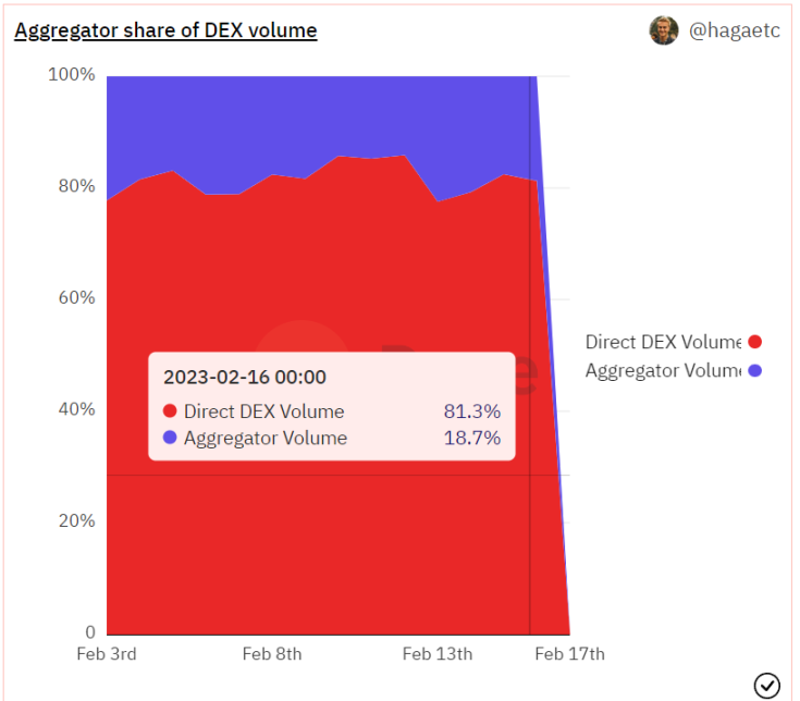 以太坊上的聚合器的市场份额与上两周相比有小幅下降,从 25.3% 下降至 20.03%。