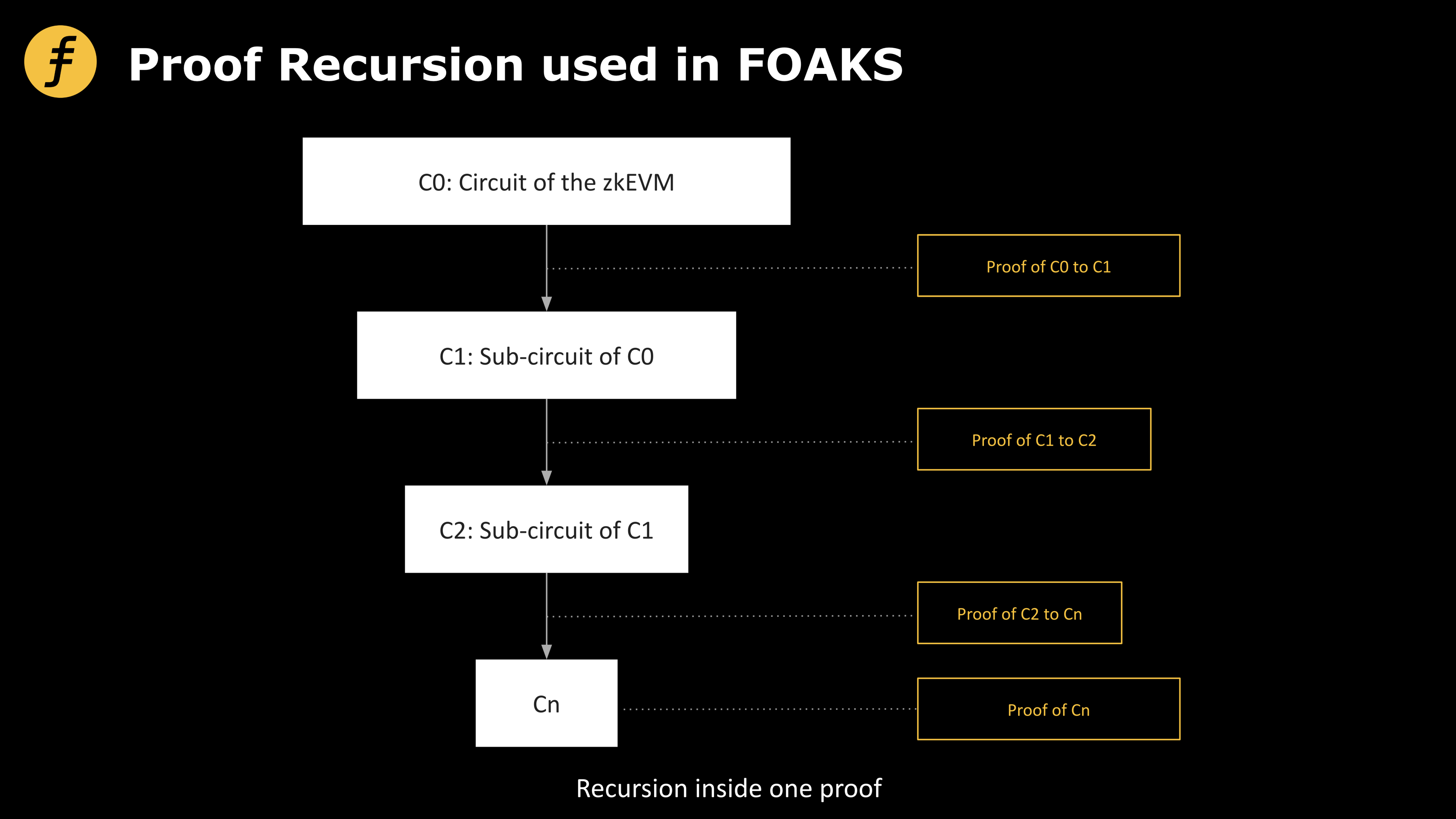 然而,这样的优化仍然停留在具体的零知识证明算法之上的层次,为了进一步提高效率,我们需要更底层的优化和创新,Fox 设计的 FOAKS 算法通过将递归的思想应用在一个证明的内部做到了这点。