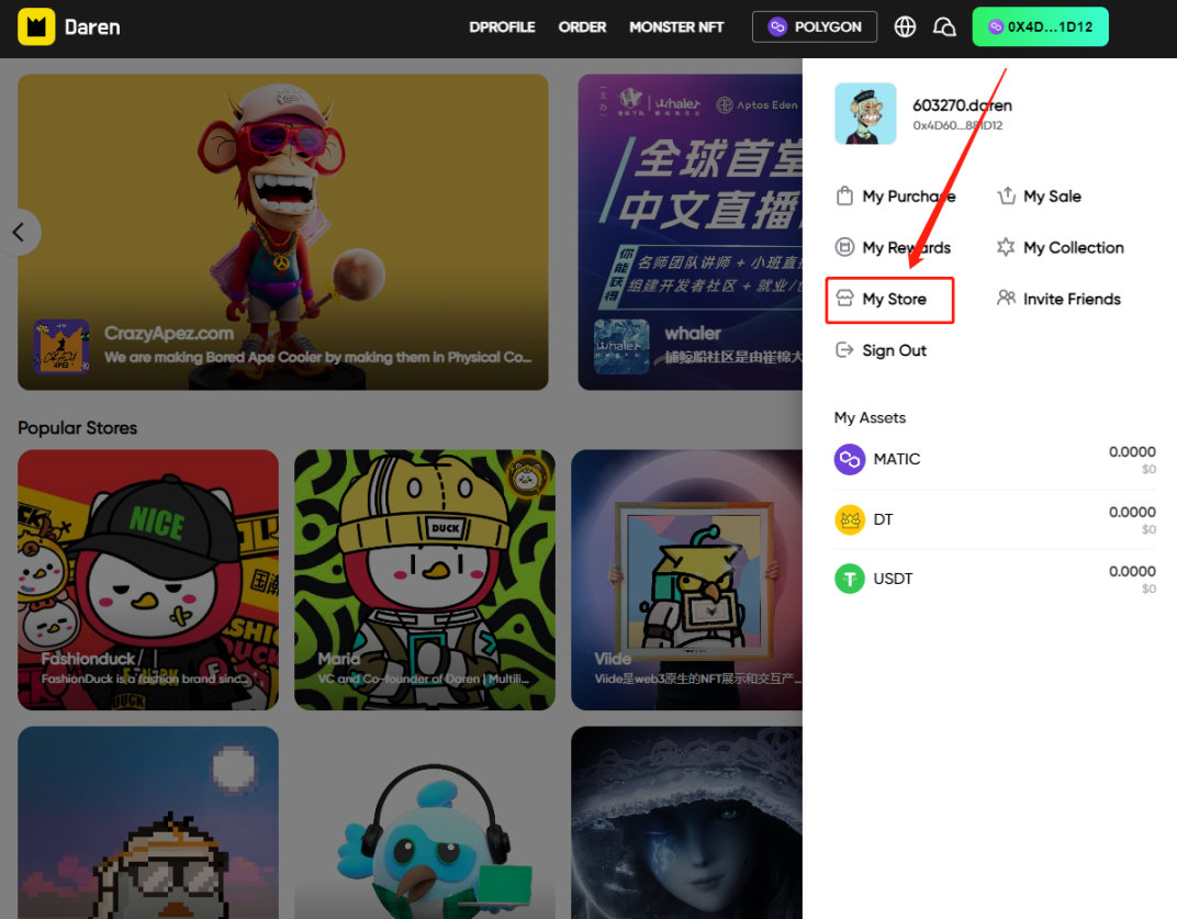 b. Approach 2: Click on the address button on the upper right corner → Select “**My Store**”