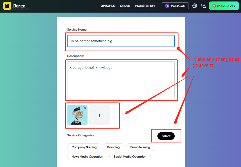 4.Edit or modify service info: Click on the information you want to modify to edit → Click on “UPDATE” button, your adjustments are set