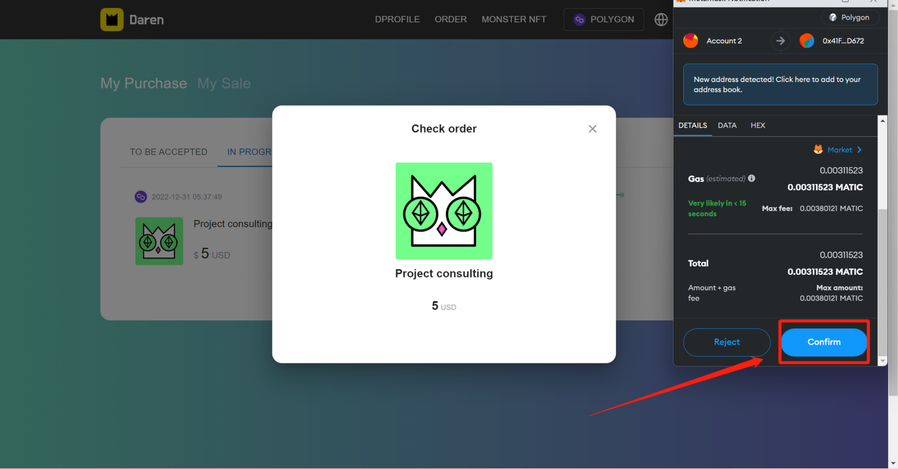Daren’s Dapp is to use the Metamask to login and complete the transaction