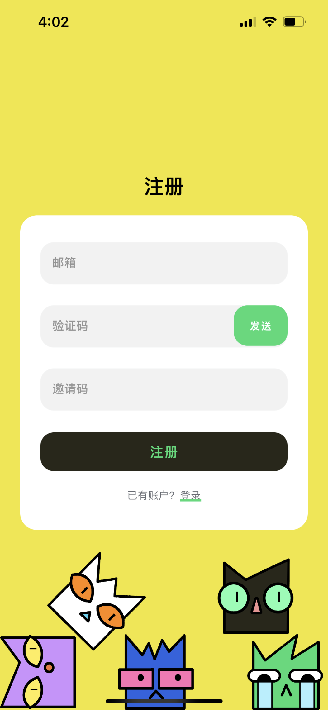 填写注册邮箱,验证码和邀请码后即可登录