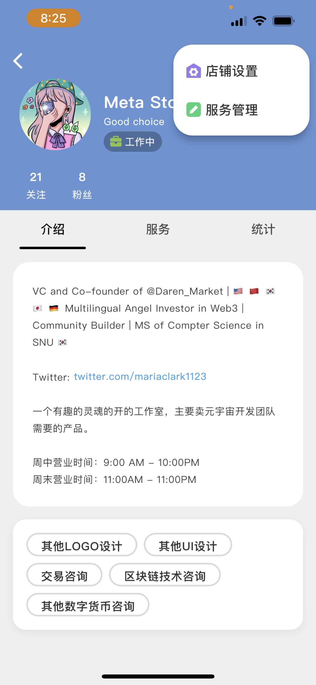 回到店铺页面右上角进入【服务管理】添加服务