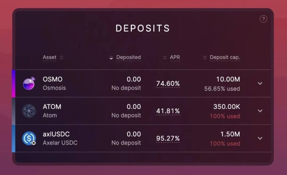 Osmo 已经达到 57%, ATOM 和 axlUSDC 都达到上限