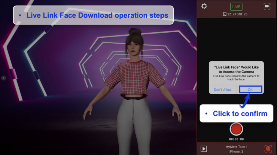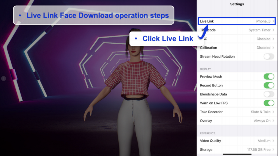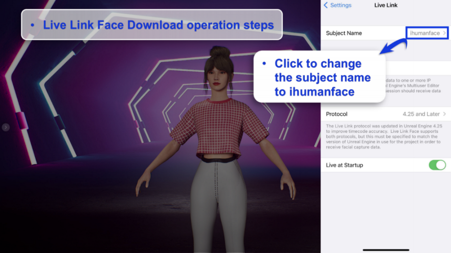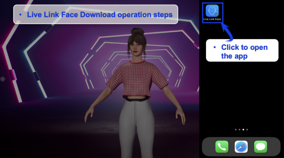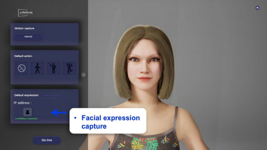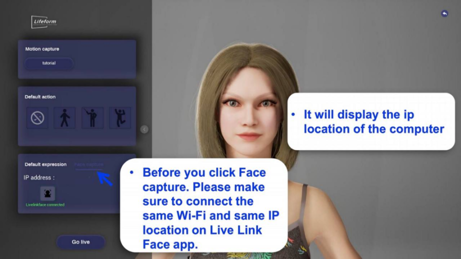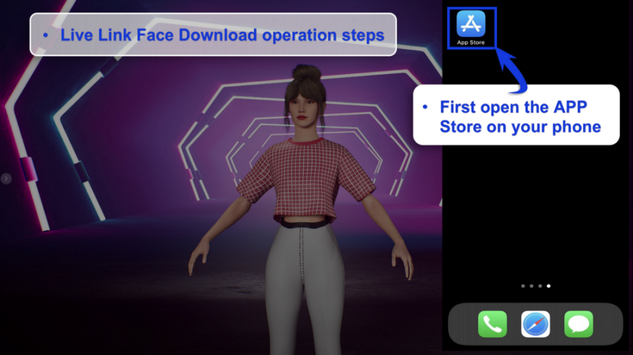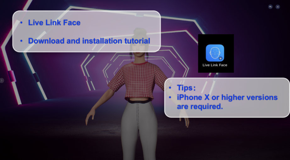 Please use iPhone X or higher versions for face capture, download the Live Link Face from App Store if you want your avatar to go live.