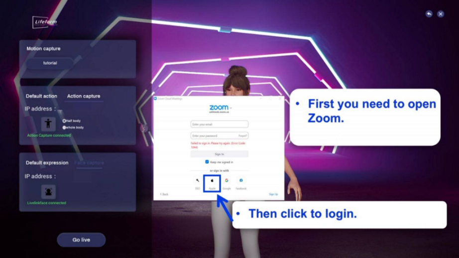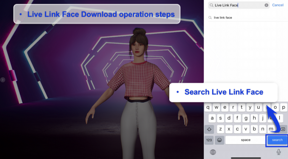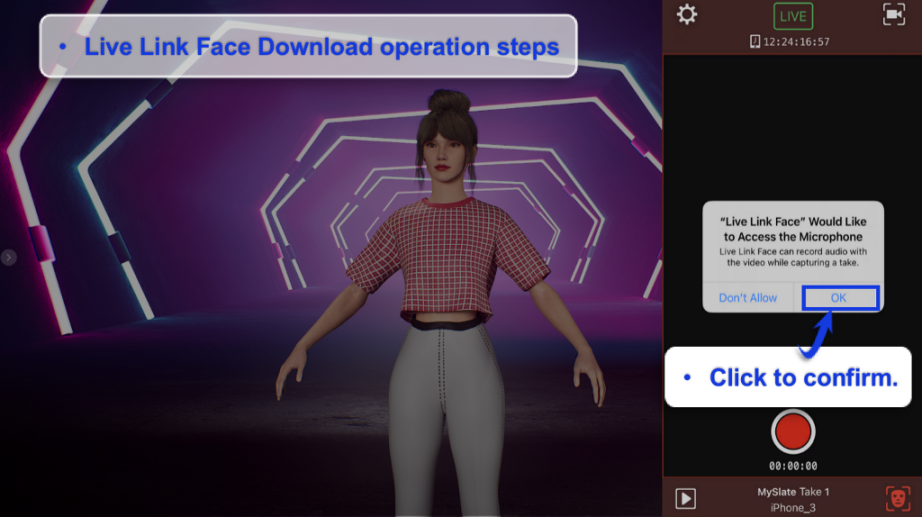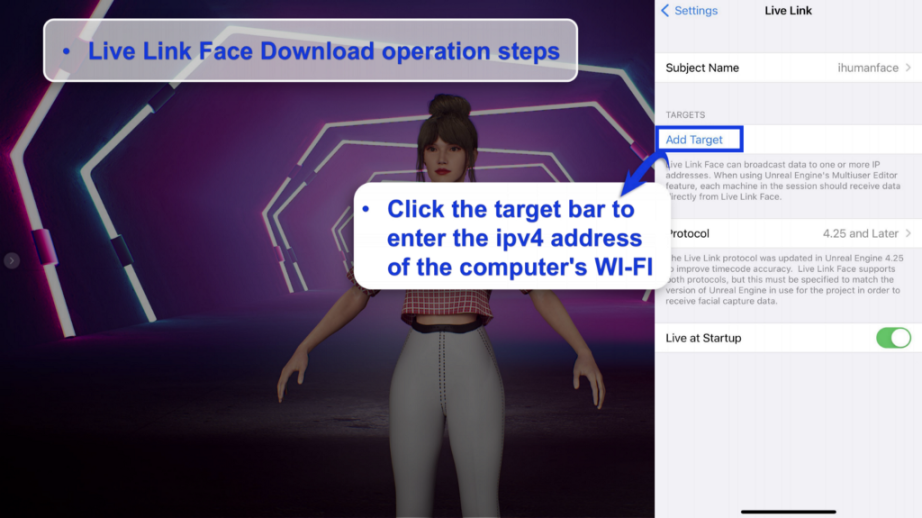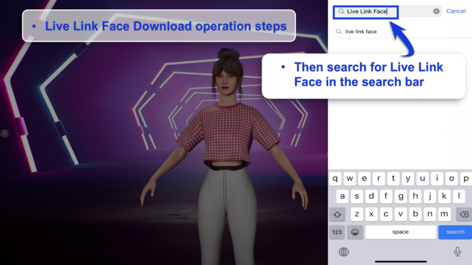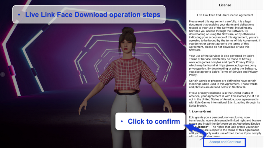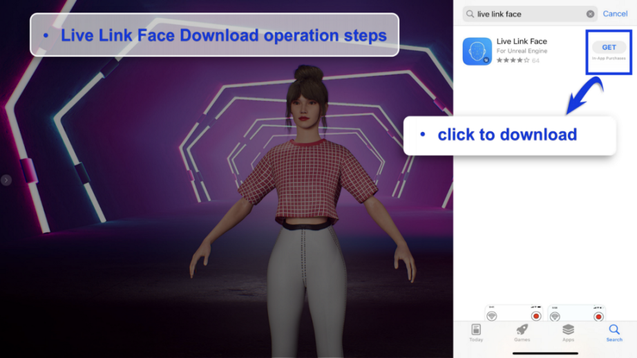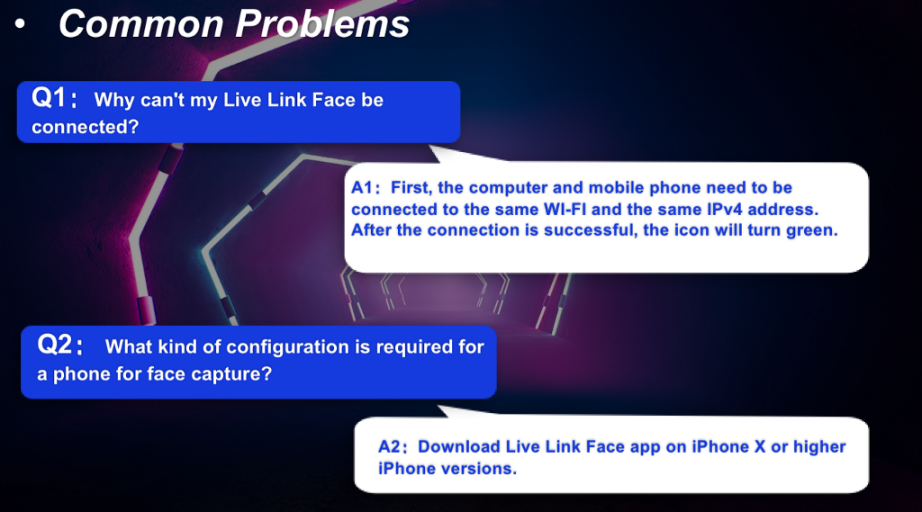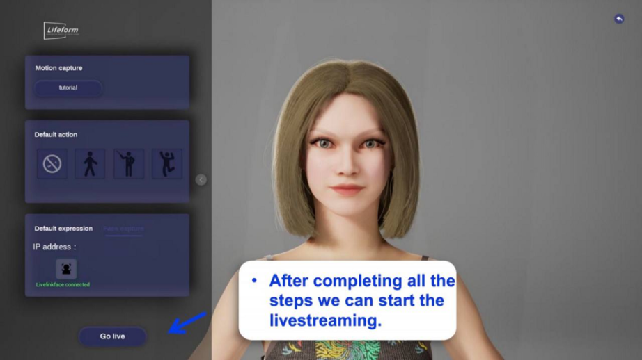 Please use iPhone X or higher versions for face capture, download the Live Link Face from App Store if you want your avatar to go live.
