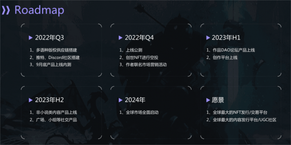 参与治理。拥有 NFT 即可参与治理,包括书籍未来影视改编、游戏改编等 NFT 持有者都可以通过投票的方式进行决策。