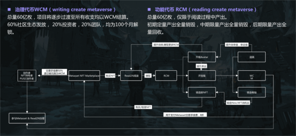 Read2N 的代币分为治理代币 WCM 与功能代币 RCM。