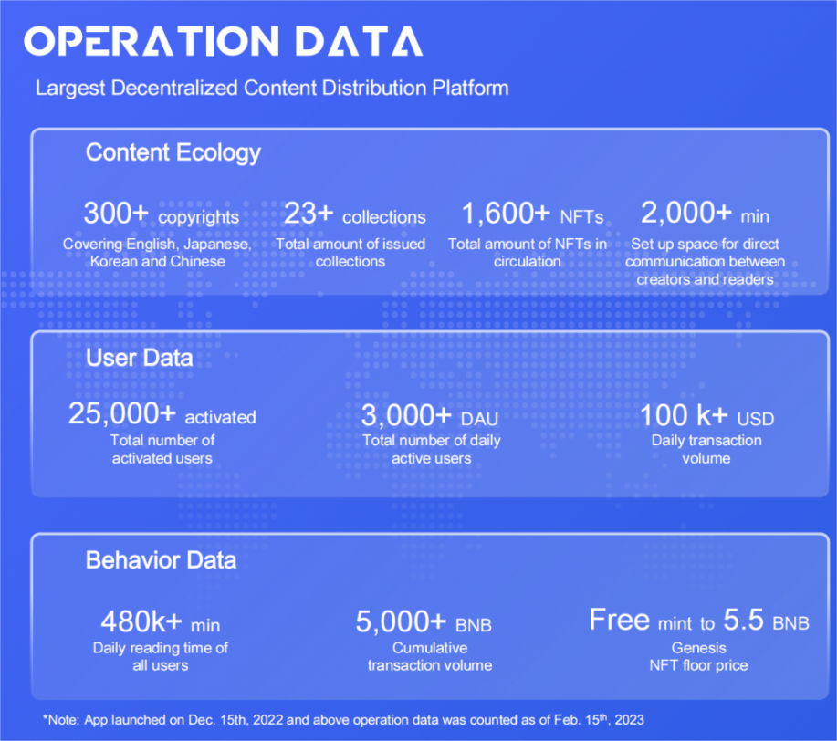 每日用户阅读时间超 48 万分钟,累计交易额超 5000BNB。