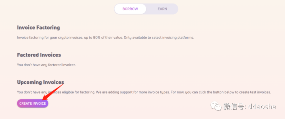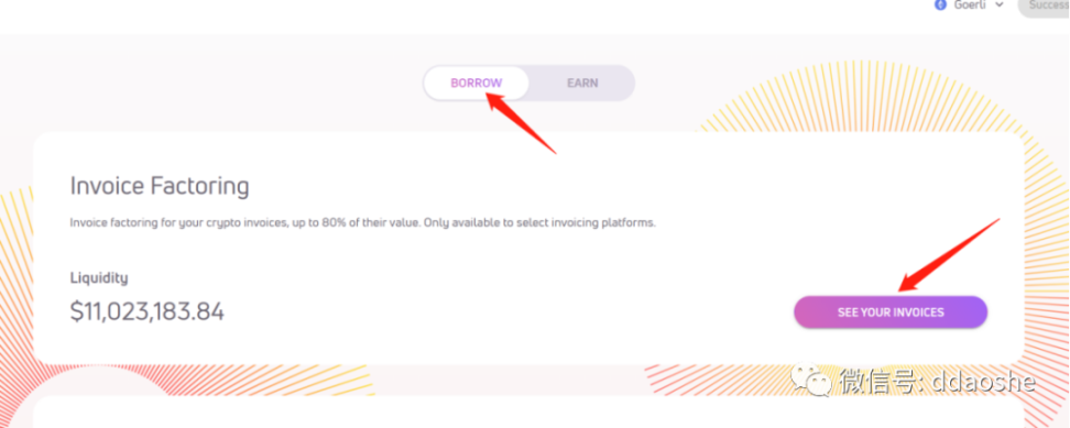 7 创建账户,Borrow 选项,点击 See Your Invoices