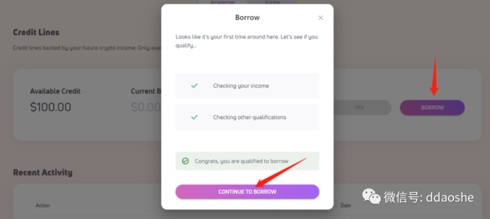 3 体验 Borrow 功能,点击 Check Your Credit Line