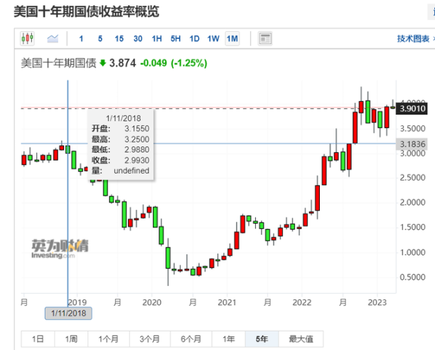 管住手,不接飞刀重申我一直以来的观点,今年比去年要好,但不如明年今年还有一个隐藏的史诗级大雷:美债违约危机瞅瞅 10 年期美债的收益率曲线(即美债价格打折率)吧,已经大大超过 2018 年金融危机的水平