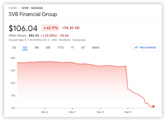 隔夜美国银行业的暴跌,成了震动整个市场的黑天鹅事件。处于漩涡中心的,是一家有近 40 年历史的大型商业银行——硅谷银行(Silicon Valley Bank,下文简称 SVB)。一纸看似问题不大的融资公告发布后,SVB 母公司 SVB Financial Group 股价闪崩 60%,又在盘后重挫 22%。