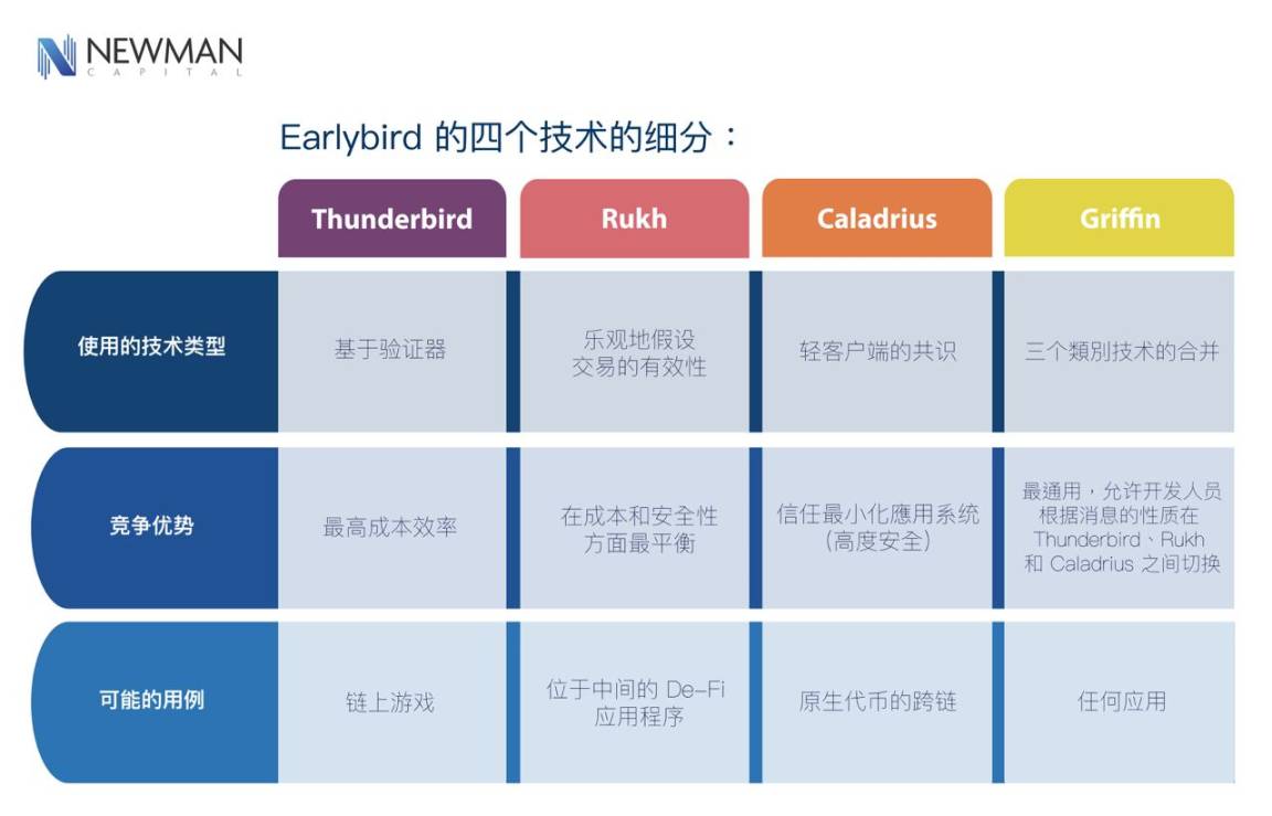 考虑到这一点,Earlybird 将发布四个不同的類別庫供开发人员构建。例如,如果游戏工作室正在构建跨链游戏,他们可能会考虑 Thunderbird,因为它优先考虑成本效率.相反,考虑到其信任最小化系统,支持数十亿美元交易的跨链桥可能会选择使用 Caladrius。