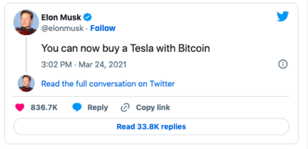 这样的事态发展与 2021 年形成鲜明对比,当时马斯克彻底颠覆了加密市场。2021 年初,他宣布特斯拉购买了价值 15 亿美元的比特币。