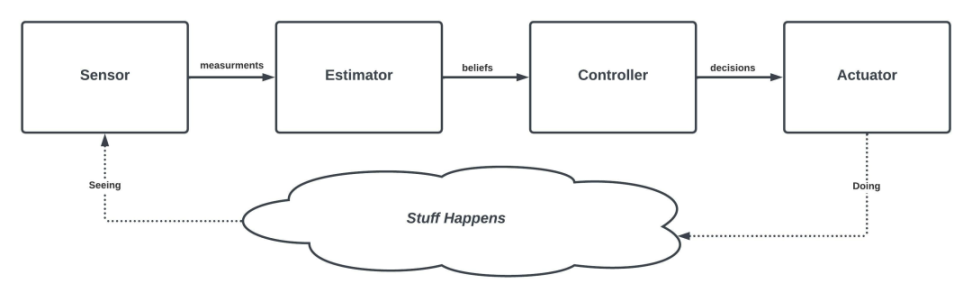 反馈控制系统是系统(例如组织)追求其目标的过程的数学表示。控制者是一个过程,它以某些信念为条件,根据目标做出决定。决策仅限于对作为控制面一部分的变量进行更改。由于决策是通过称为执行器的机制执行的,因此执行器可以操纵的变量构成了控制面。执行器也是一个接口,它将决策转化为具体的行动,并最终转化为结果。结果由传感器观察,这些传感器是将结果转换为测量值的接口。这些测量值用于更新关于哪些决策可以成为条件的信念。该过程的递归(或循环)性质至关重要,因此称为“反馈控制”。在第3节中,我们将治理面定义为组织的控制面,特别关注定义去中心化组织规则的代码。按照这个类比,探索成功实现其目标的反馈控制系统的属性是谨慎的。
