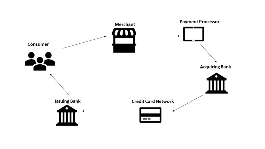 The image above shows the various stakeholders in the global retail payment network that stands between the consumer and the merchant.