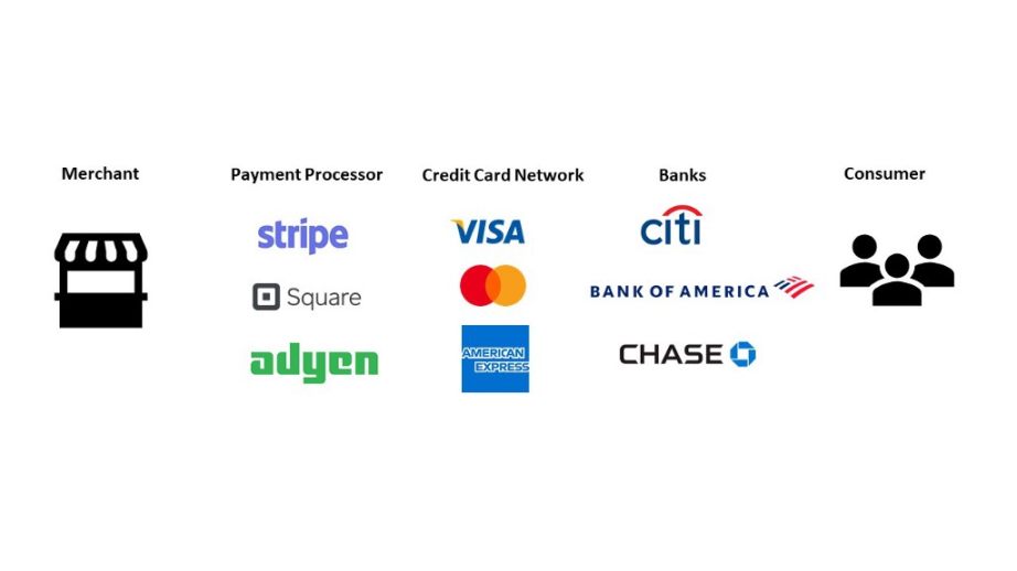 Interchange occupies the bulk of card processing fees. Interchange is the fee charged by the issuing bank (e.g. Citi, Bank of America) for settling a transaction. Interchange fees usually consist of a percentage of each transaction along with a flat charge (e.g. 2.1% + $0.10). Assessment fees are paid to card networks (e.g. Visa & Mastercard ) for being the intermediary between the acquiring and issuing banks. Acquirer fees are paid to the acquiring bank (e.g. Chase, Wells Fargo) for underwriting risk and also for paying out to the merchants. Payment processing fees are paid to the providers (e.g. Stripe, Square) that provide the payment software or hardware to the merchant. Furthermore, the payout is not instantaneous as merchants would usually have to wait for a few days before they receive the payout.