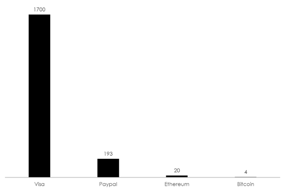However, in reality there were several factors that drove weak acceptance of cryptocurrency for retail payments. Firstly, the transaction speed of cryptocurrencies like Bitcoin and Ethereum were lacking compared to incumbents Visa and PayPal. Payments processed on networks such as Ethereum might require an uncertain amount of time ranging from 10–30 minutes which is unacceptable for merchants looking for on-the-spot transactions. In ecommerce and online purchases, the longer it takes for payment to process, the higher the chance of abandoned carts. The low TPS and heavily congested networks of most popular blockchains have also resulted in high transaction fees which the consumers might be unwilling to pay for. For instance, the average transaction cost on Ethereum in 2022 is around $42 which probably exceeds the cost of most small ticket items.