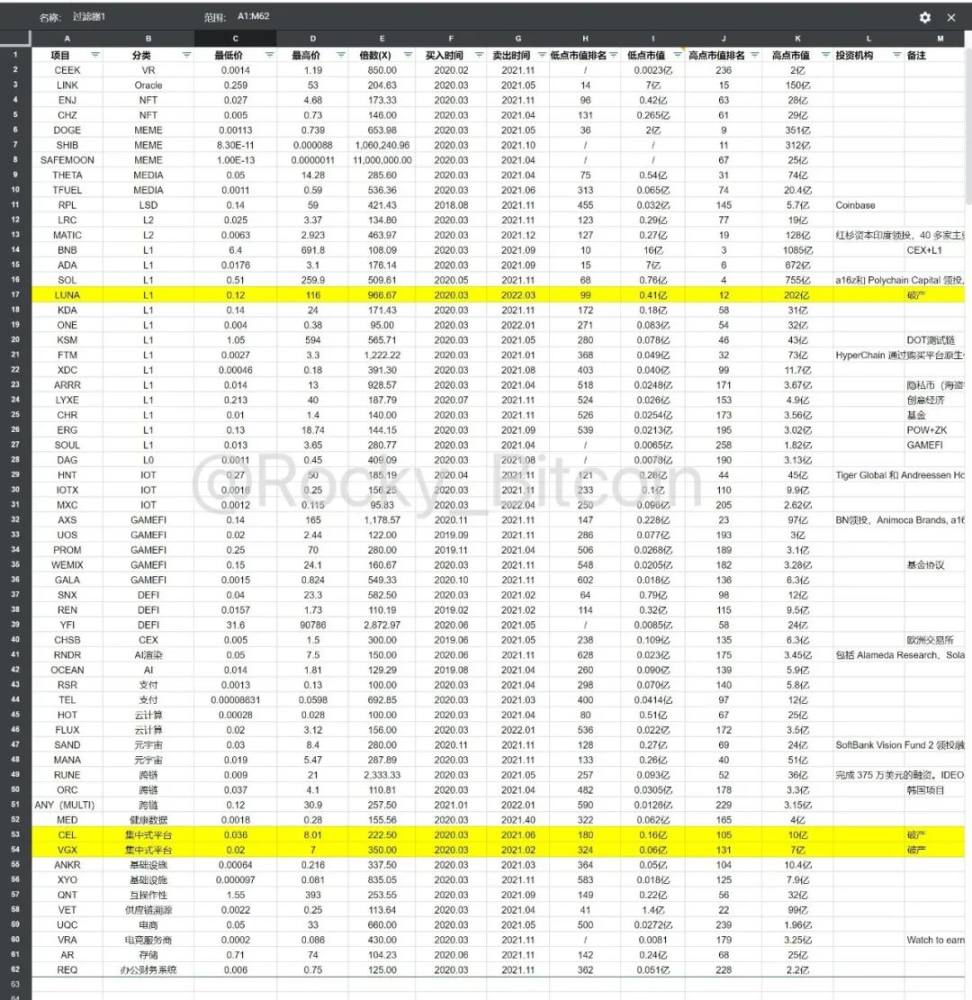 从 2020(个别 2019 年)-2021 年整个大牛市周期中,市值前 600 的加密货币中,诞生了 61 个百倍以上的项目。