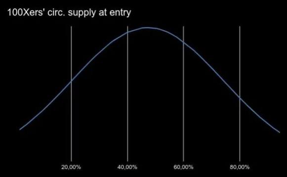4.从解锁流通情况来看。MC 集中分布在 40%-60% 区间,并不是全流通就很好,也不是流通很少就很好。这是一个奇怪的现象,无法证伪。暂时没有充足的理由说服我自己(欢迎讨论)。大概率跟诞生时间有关联,大多在 18,19,20 年诞生。