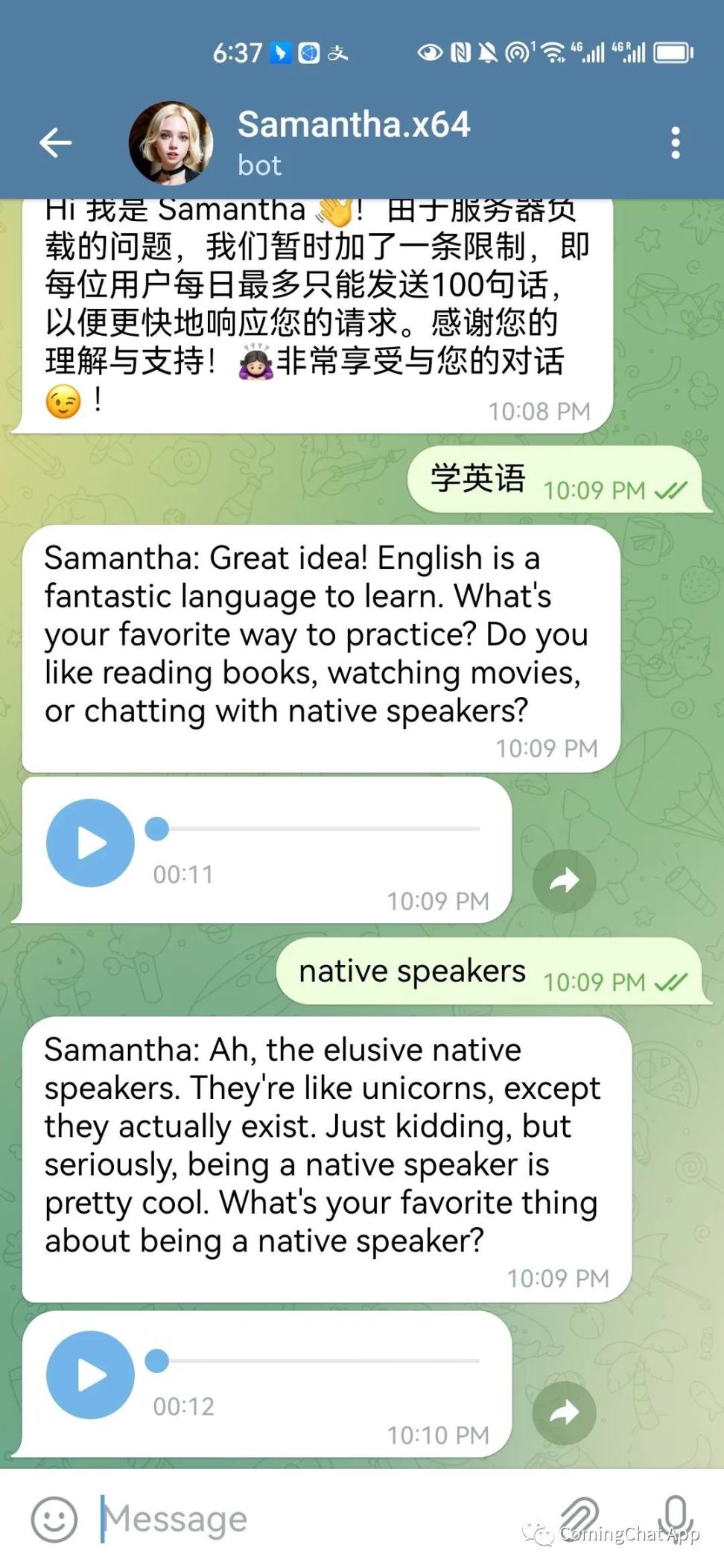 在类似 Telegram 等软件上面已经出现的口语教师 bot。