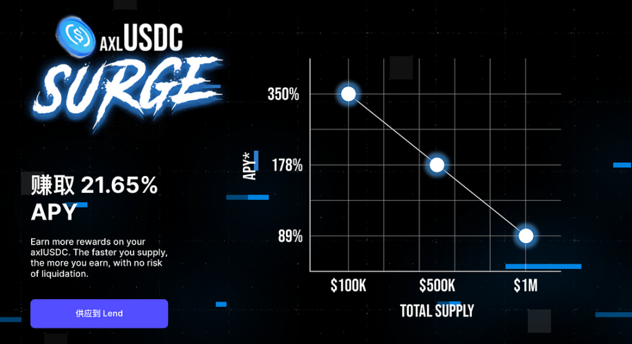 即日起,流动性提供者能够通过供应持有的 axlUSDC 资产赚取奖励。参与 Surge 活动非常简单,只需遵循以下几个简单步骤即可: