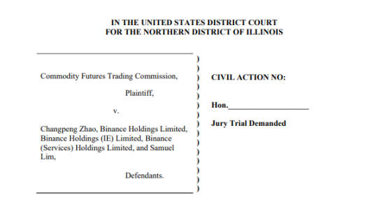 商品期货交易委员会(CFTC)周一向美国联邦法院对加密货币交易平台 Binance、其创始人兼首席执行官赵长鹏 “CZ” 和首席合规官 Samuel Lim 提起诉讼,因 Binance 违反了美国有关商品的几项法律和法规,包括未能打击其平台上的洗钱活动。