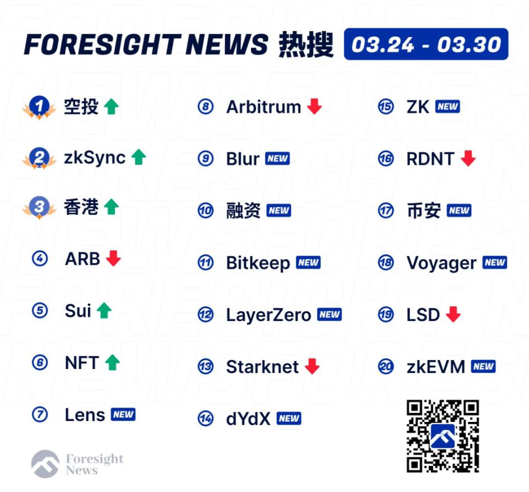 注:「每周热搜」统计自 Foresight News 上周五至本周五(3 月 24 日至 3 月 30 日)的用户搜索结果,同时对相同概念的大小写进行了合并处理。