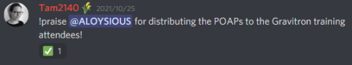 以下图为例,管理员在Discord给你一个praise,就相当于两个代币。