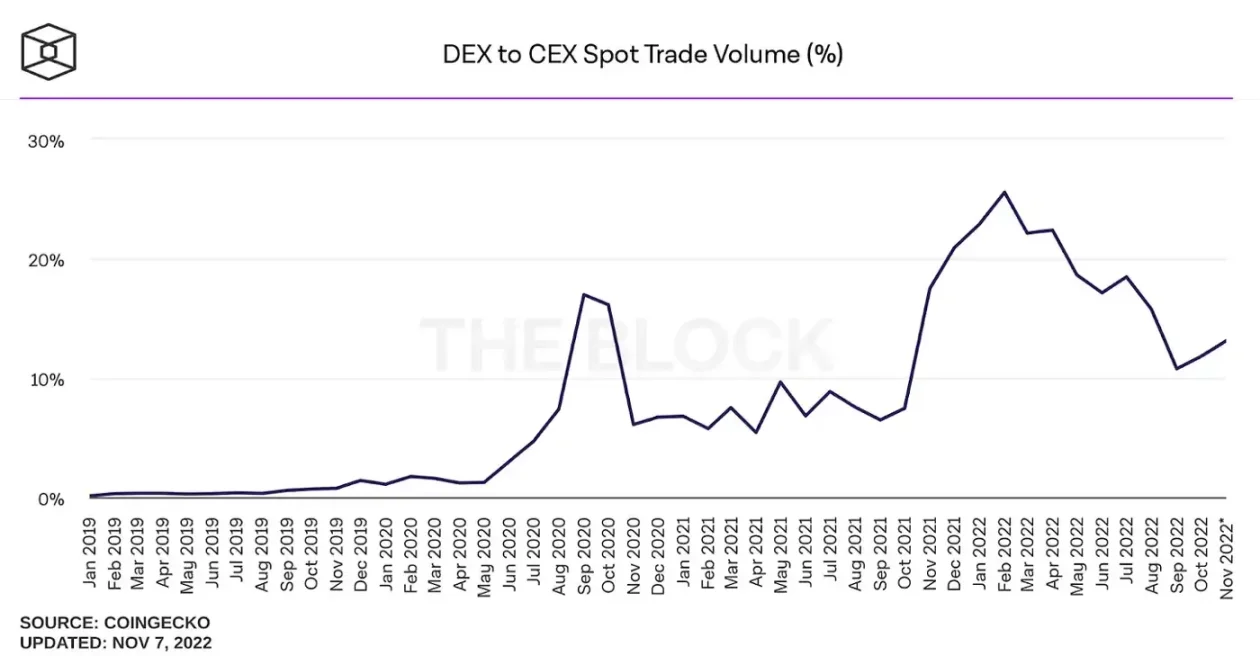 DEX accounted for around 15% of total trading volume in the crypto industry. It has been rising consistently in Q4 and shows growing demand post-FTX collapse.
