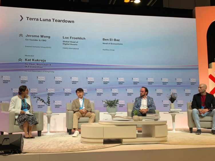 The Web 3 landscape, including DeFi and metaverse, has attracted tremendous attention from the attendees. In the Web 3 stage panel “Terra Luna Teardown’, our Co-founder and Chief Business Officer Jerome Wong shared his insights on the future of DeFi and algorithmic stablecoins with Ben El-Baz (Head of Ecosystems at Hashkey), Luc Froehlich (Global Head of Digital Assets Solutions, Fidelity International) and moderator Kat Kukreja (Co-Chair, Blockchain & DLT Committee at FinTech Association of Hong Kong).